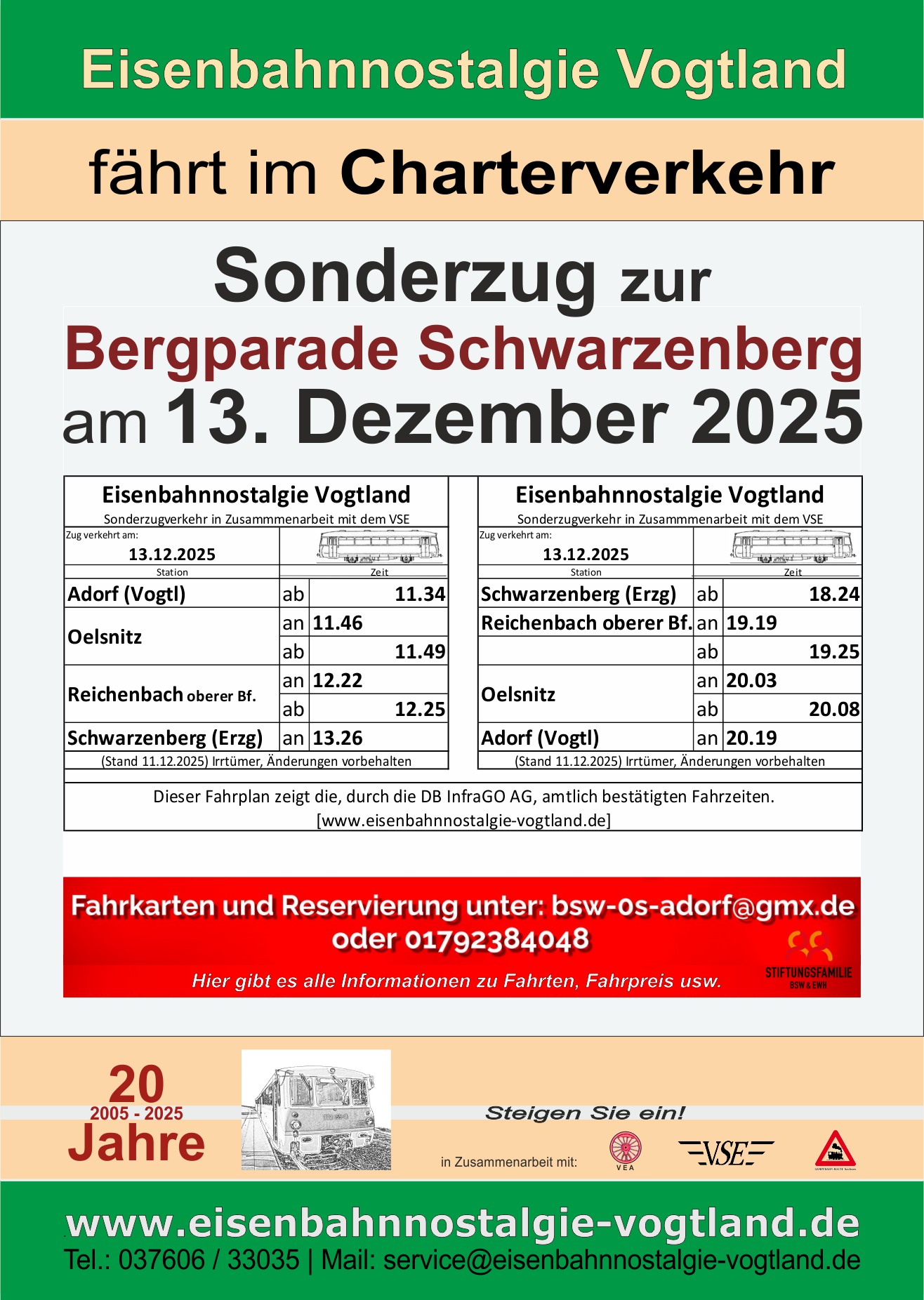 Die ENV war am 15. und 16. November 2025 zwischen Adorf und Zwotental zu Sonderfahrten für den OVEB e.V. im Einsatz.