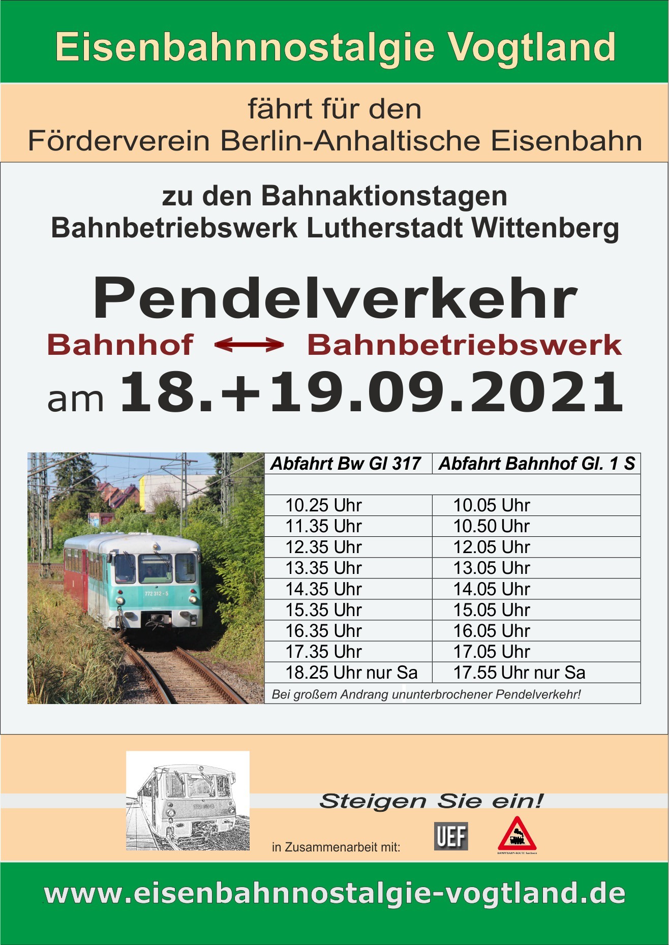 Für die Besucher ist ein Pendelverkehr vom Bahnhof Adorf zum Bahnbetriebswerk, welcher stündlich (1. Abfahrt im Bahnhof Adorf 10.10 Uhr) mit Triebwagen (LVT) der Eisenbahnnostalgie Vogtland verkehrt, eingerichtet. Aus dem Bw werden bei der Rückfahrt zum Bahnhof die Anschlüsse zur Vogtlandbahn sichergestellt. Der genaue Fahrplan ist an den Abfahrtsstellen veröffentlicht.