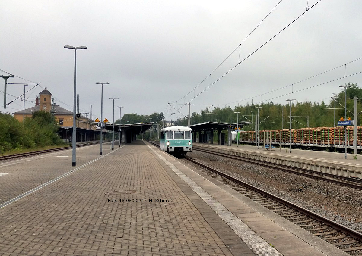 Mit dem letzten Zug aus Richtung Annaberg-Buchholz endet der diesjährige LVT-Einsatz der Eisenbahnnostalgie Vogtland für die öffentlichen Fahrten der Erzgebirgische Aussichtsbahn. Anlaß der Fahrten war das 25. Altstadt- und Edelweißfest in Schwarzenberg.